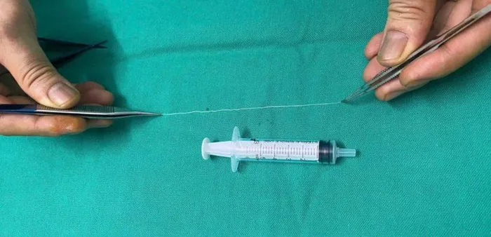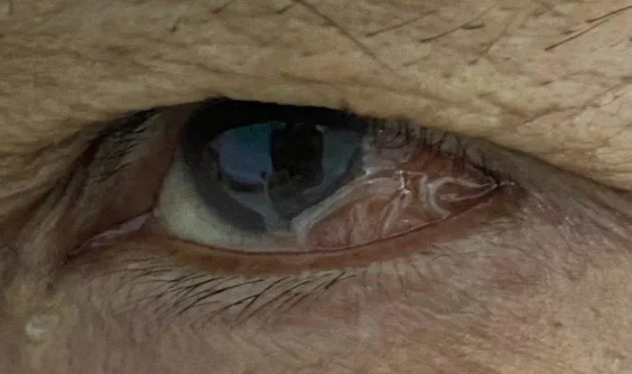 Sau khi thăm khám lâm sàng và soi mắt dưới kính hiển vi, các bác sĩ phát hiện một ký sinh trùng trong suốt, hình dạng giống giun chỉ, có kích thước dài khoảng 14cm, đường kính 0,5mm đang chuyển động tại vùng thái dương dưới kết mạc nhãn cầu.